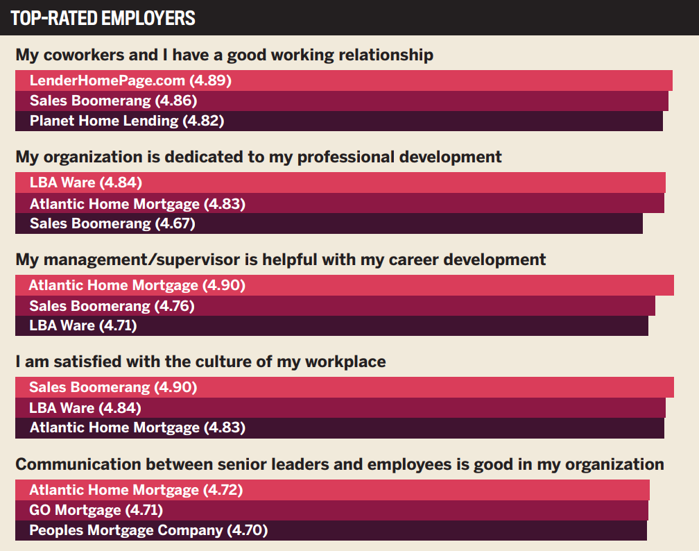 For mortgage employers to come out on top in this year’s survey, employees needed several prerequisites in place.