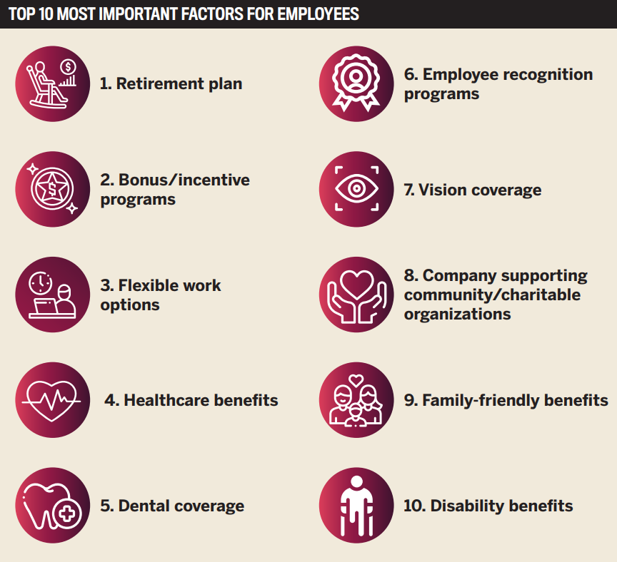 Employees needed to feel protected by a provision of comprehensive benefit packages. Diversity in the workplace was valued, and staying connected and utilizing technology were also paramount.